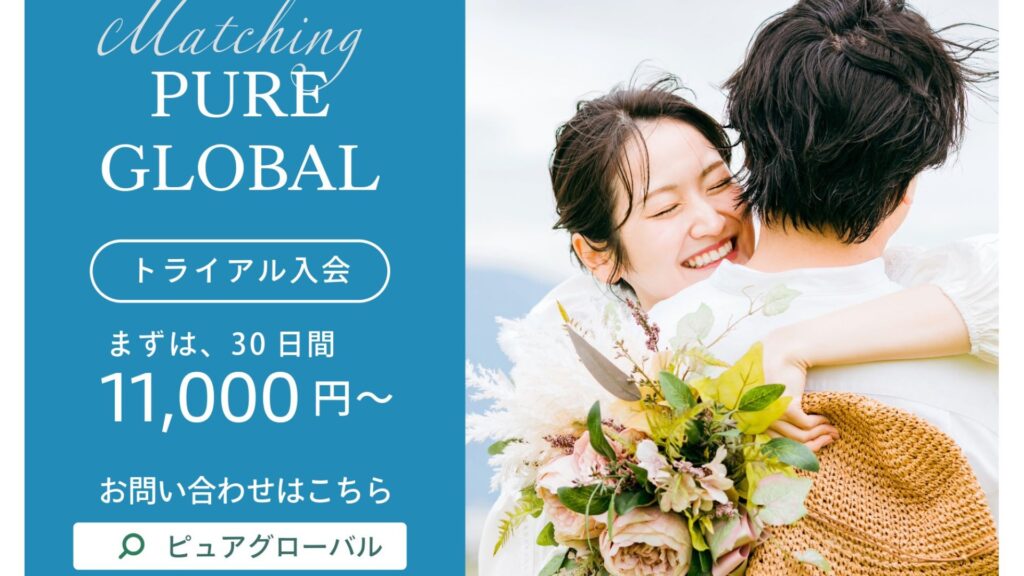 ピュアグローバルマッチングは、海外駐在員や海外在住者の婚活を専門にサポートする結婚相談所です。