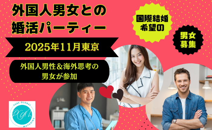 海外在住経験のある方や、日本在住の外国人の方、グローバルなお仕事や海外旅行がお好きな方にぴったりのリアル婚活パーティーです。